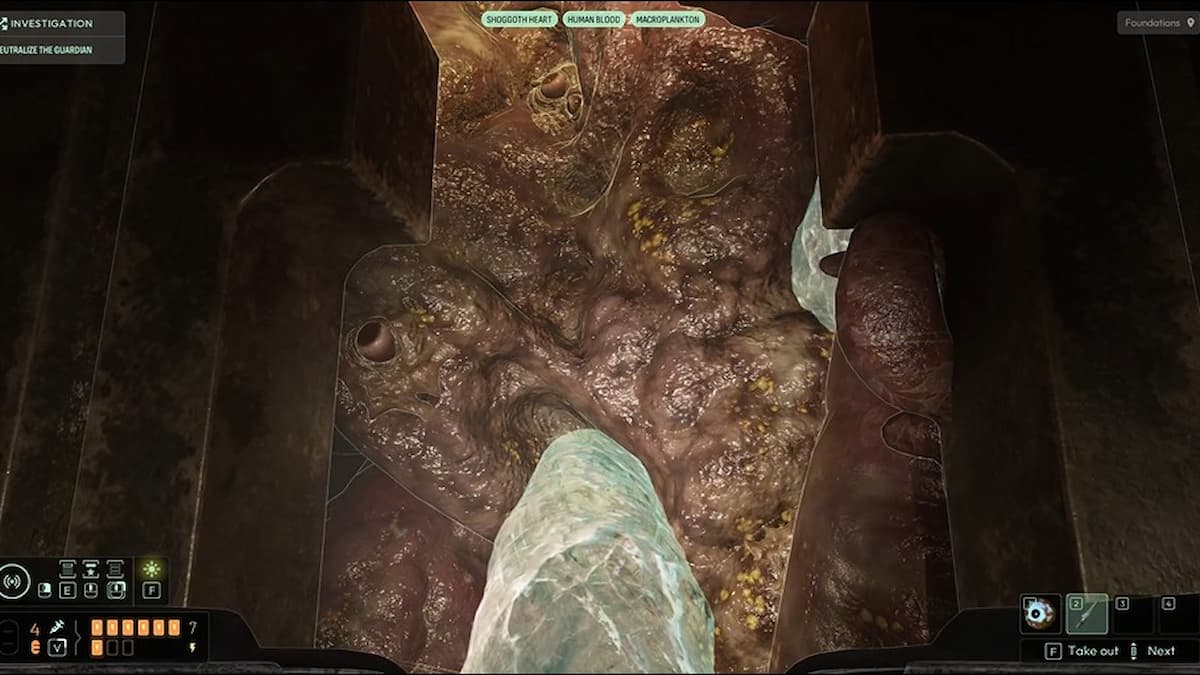 После всех открытий можно объединить три частоты (как указано в записи Марша), чтобы проявить невидимые части Стража: Сердце Шоггота, Макропланктон и Человеческая кровь.