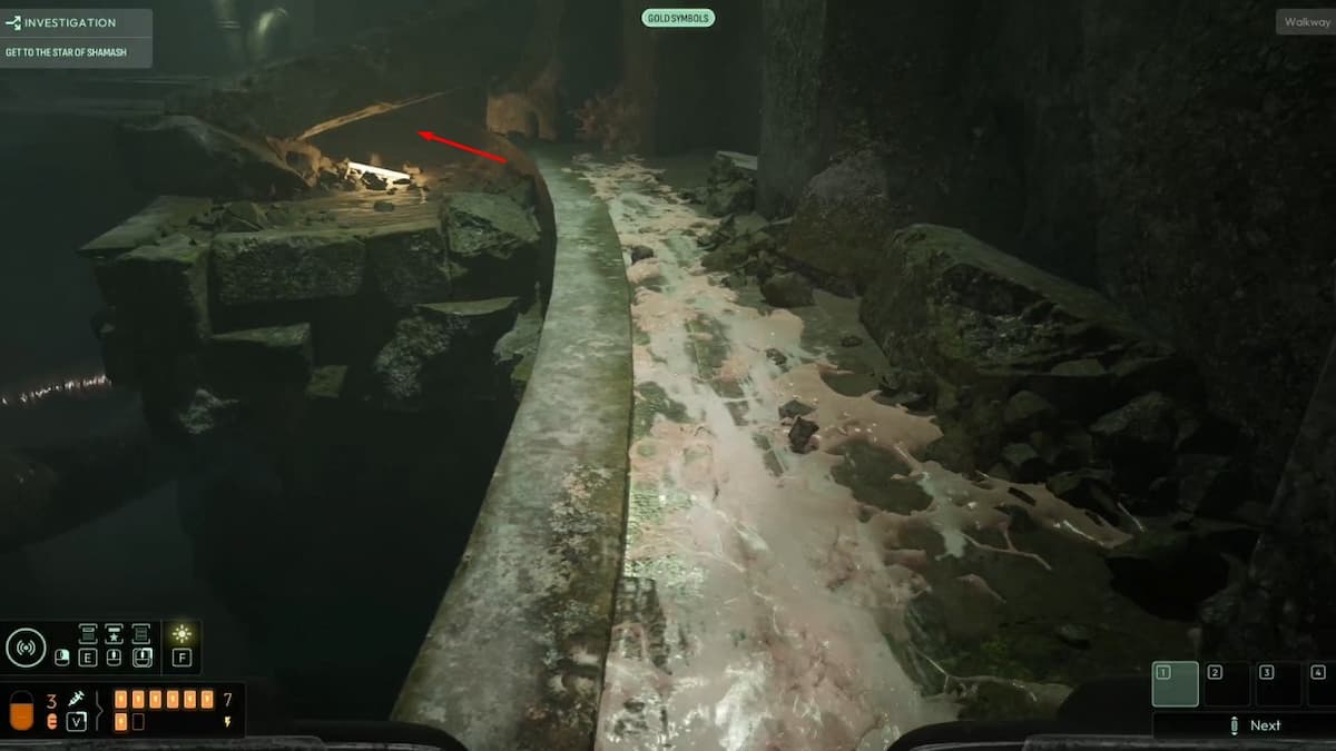 Внутри используйте частоту Золотые символы и прочитайте все стелы в этой зоне — это даст больше информации и подскажет, что делать дальше. Обязательно осмотрите верхний уровень (доступна только половина верхней комнаты).