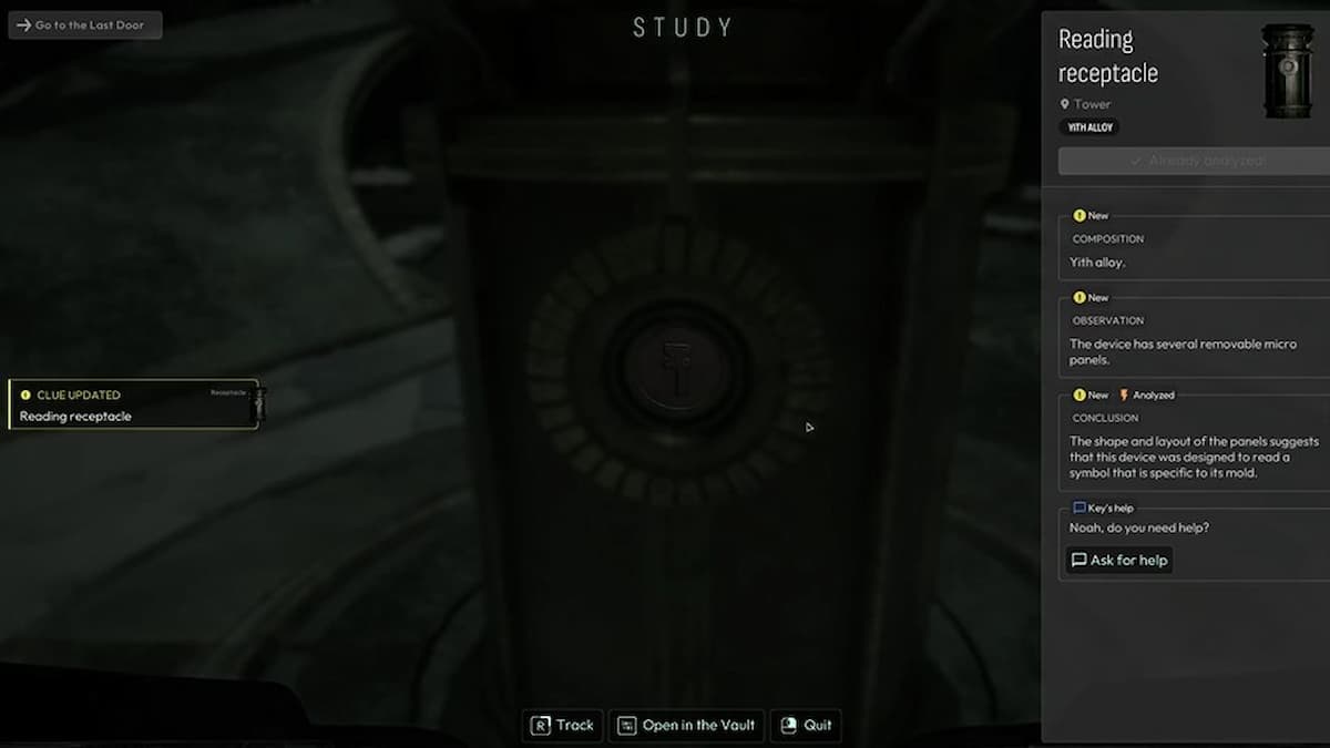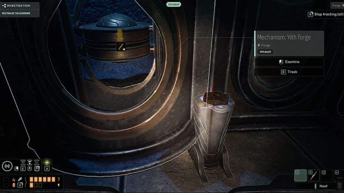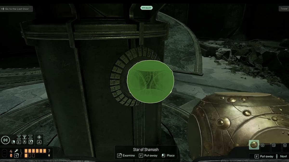 Когда переберётесь в башню из лаборатории, обязательно осмотрите сферы из сплава Йитхов и металлическую плиту на полу рядом с ними.