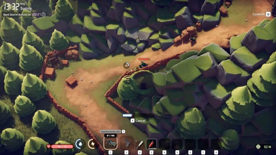 После этого нажмите горячую клавишу, соответствующую ячейке с динамитом, чтобы взять его в руки. Затем зажмите левую кнопку мыши для прицеливания и отпустите, чтобы метнуть взрывчатку. Отойдите на безопасное расстояние и наблюдайте, как цель разрушается на ваших глазах. В большинстве случаев динамит нужен для доступа к скрытым зонам с добычей, точкам быстрого перемещения или внутренним помещениям складов.