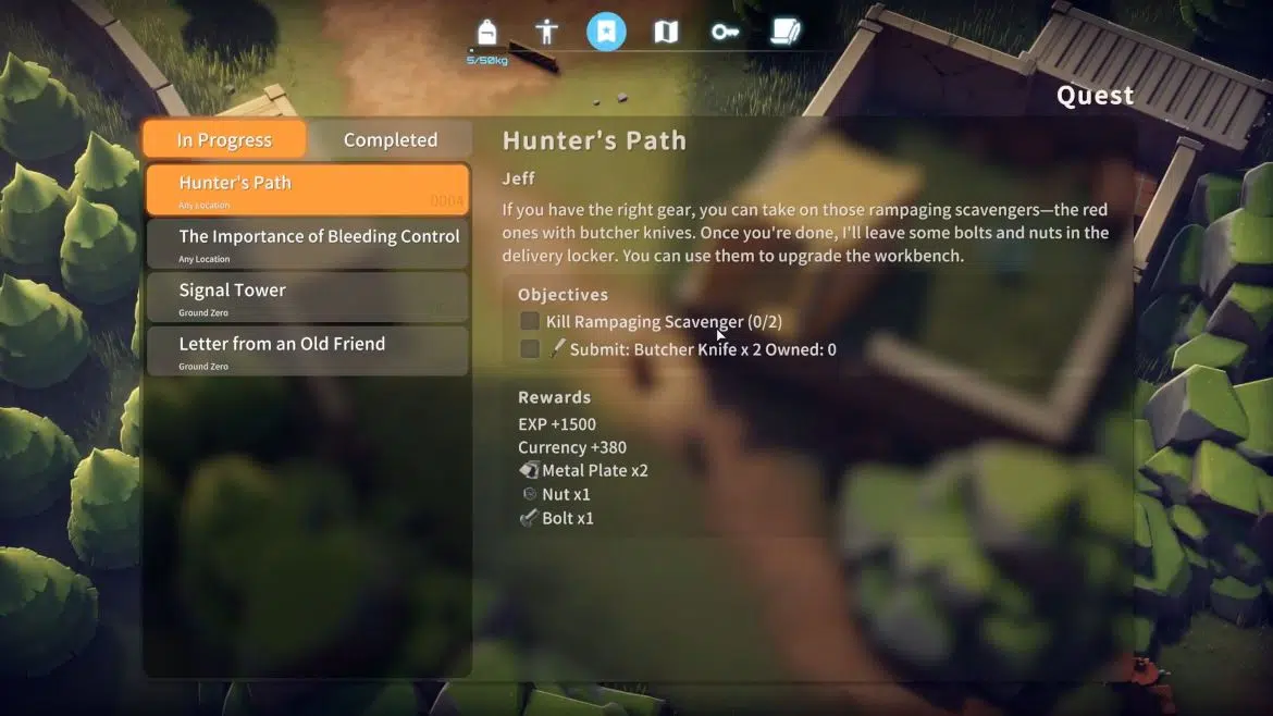 Квест «Путь охотника» начинается с поиска разъярённых сборщиков, о которых рассказал Джефф. Миссия довольно проста, и их местоположение фиксировано. Их легко найти в лагере, если следовать по лесной тропе на юг. Чтобы точно определить их местоположение, направляйтесь к открытому участку слева от грунтовой дороги у входа в бункер. В итоге вы найдёте сломанный забор, который позволит пройти дальше на юг.