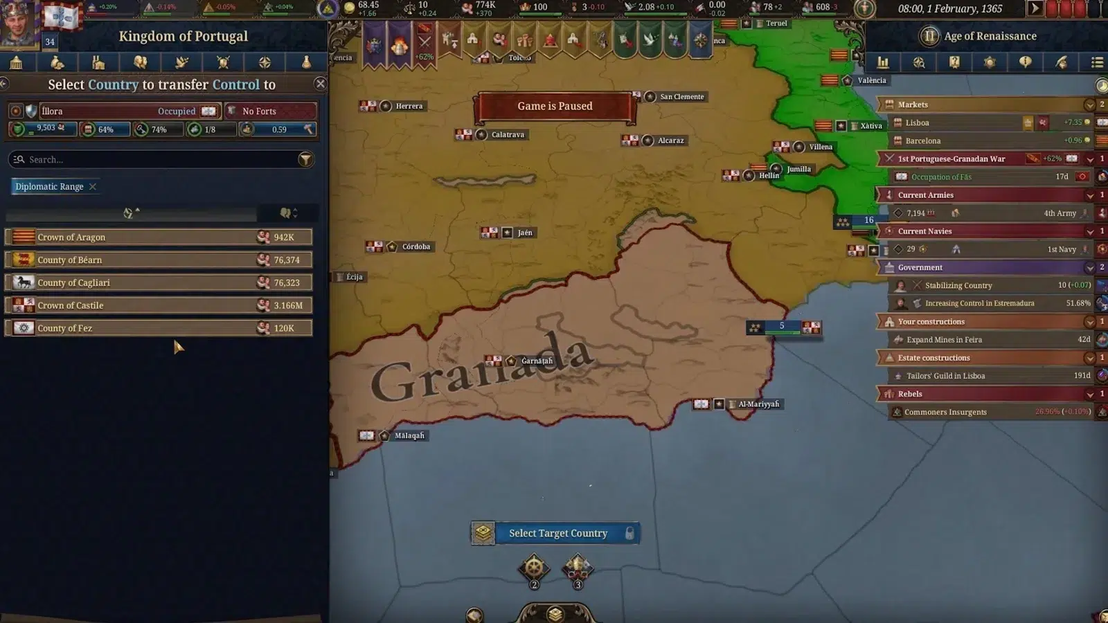 Важно также, чтобы была доступная страна, которая готова принять оккупацию провинции, которую вы хотите передать. Вам необходимо соответствовать определённым внутриигровым требованиям со стороны союзников или вассалов, готовых принять передачу, прежде чем вы сможете начать процесс передачи.