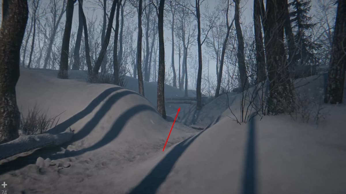Игра подходит к своему завершению. После короткого путешествия по заснеженной реке пристаньте к левой шине, оставьте лодку и ступайте по узкой тропинке, проложенной в глубоком снегу среди высоких елей. Вскоре перед вами появятся два поваленных ствола — пригнитесь и продолжайте движение.