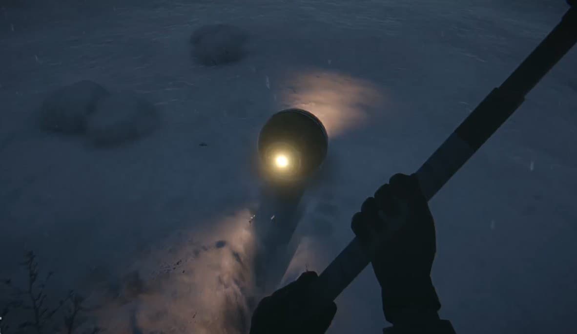 В маленькой сторожке справа — детали. Поднимайтесь к главному зданию по обледенелым склонам (идите по краям). Ворота закрыты — запускайте дрон над ними, летите вперёд и влево, врезайтесь в рычаг — ворота откроются.