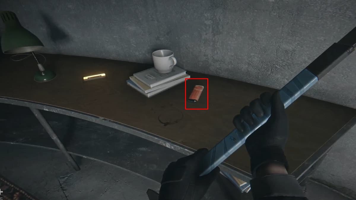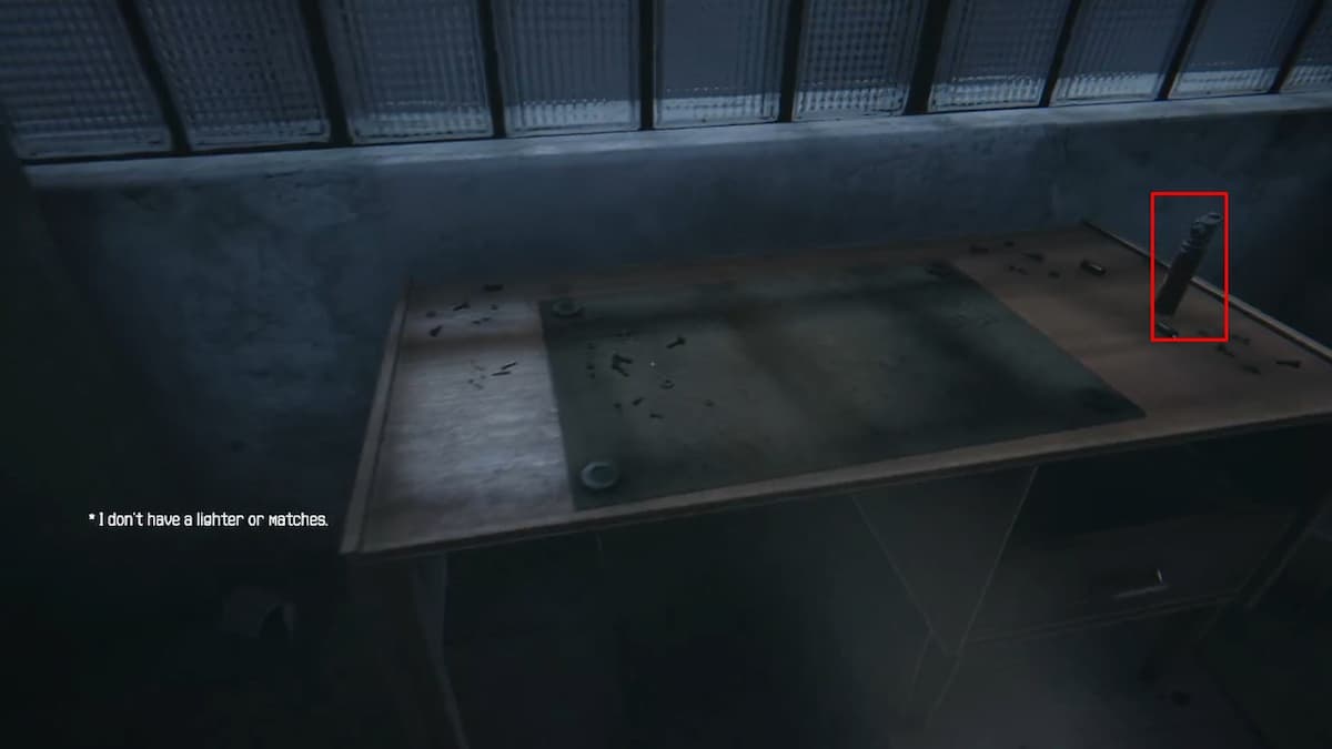 У башни справа зайдите внутрь: на столе зажигалка (важно — будет поджигать лечебные бочки), на полках химикаты и детали, есть верстак для крафта шприцов.