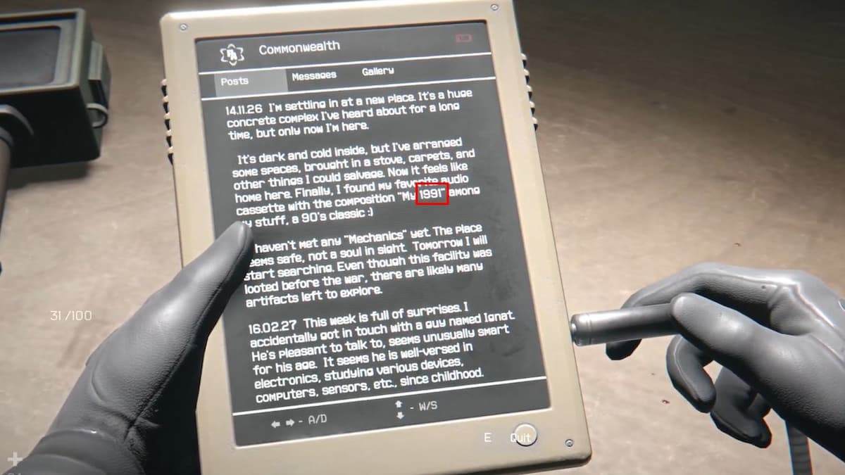 На этом же столе красный сейф с надписью «Классика 90-х». Откройте электронную книгу позади — там дата 1991. Введите 1991, заберите блочный ключ.