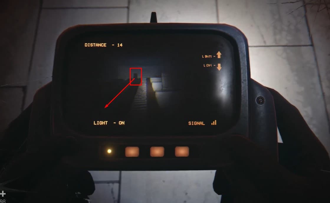 Управляя машинкой, проезжайте под воротами у стола секретаря, двигайтесь прямо по коридору до конца и поверните налево в слегка приоткрытую диспетчерскую. Толкните картонную коробку под кнопку, заезжайте на пандус и ударьте кнопку — удерживайте E, чтобы выйти из режима управления.