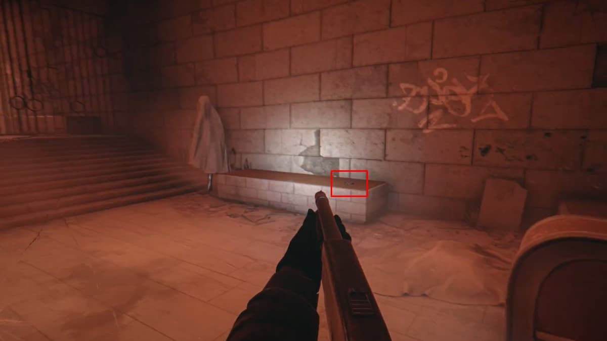 Слева за углом — красный ящик-инструментов (откройте мини-игрой) → шприц внутри.