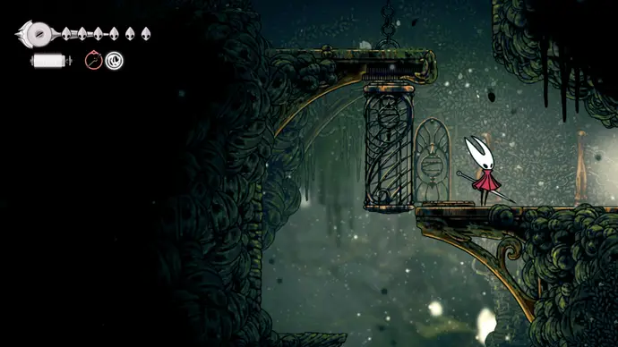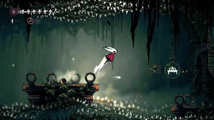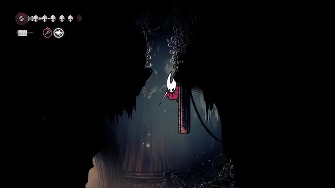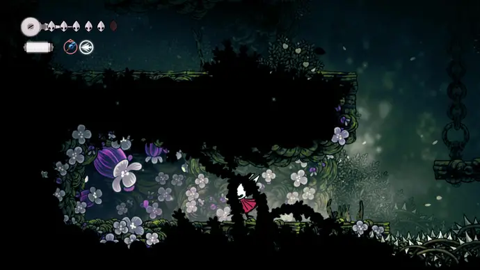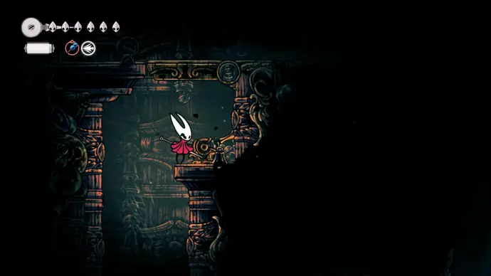 Вернитесь в Панцирный лес и доберитесь до скамейки с лифтом рядом. Поднимитесь на лифте наверх и проберитесь в самый верхний правый угол следующей комнаты. Разбейте стену из дрожащих колоколов, чтобы открыть вход в колокольные проходы над Звонвиллем.