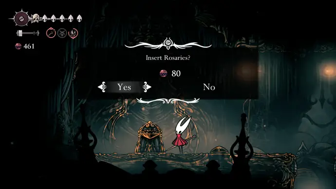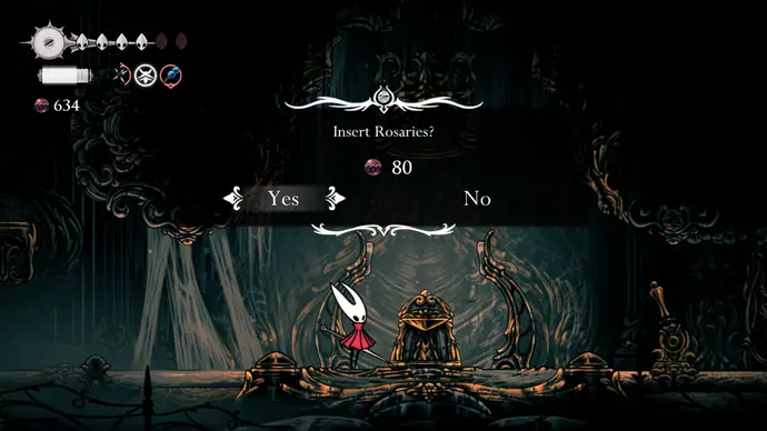 Завершив испытание, щёлкните рычаг слева, чтобы спуститься ниже, и полностью исследуйте комнату — включая путь с врагами вниз к Сундуку Бусин внизу. В правом нижнем углу главной части комнаты есть дыра, в которую можно спуститься, ведущая к станции Вентрики, которую видели ранее. Заплатите 80 бусин, чтобы открыть её, затем щёлкните рычаг справа, чтобы открыть лёгкий путь к ней.