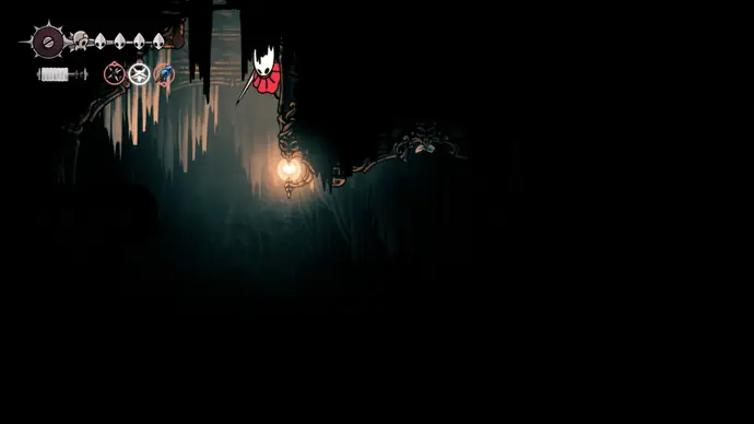 Из Великого Колокольного Пути перепрыгните через яму Колокольного Зверя и выйдите влево. Заберитесь по крайней левой стене, затем пройдите через левый дверной проём в тёмный боковой проход.