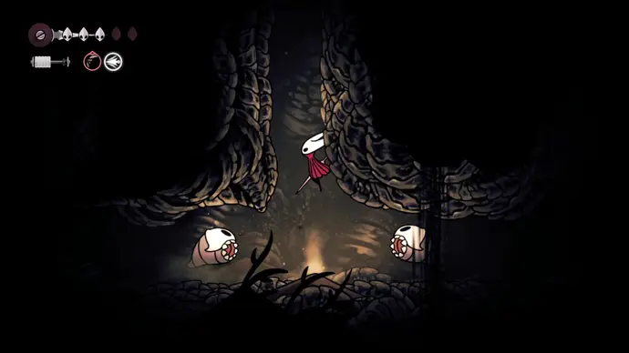 Если вы получаете много урона и у вас мало шёлка для лечения, атакуйте падающих червей, чтобы пополнить шёлк. Их нельзя убить, но они дают почти бесконечный источник лечения в Червоточинах. Теперь эта область кажется не такой уж страшной!