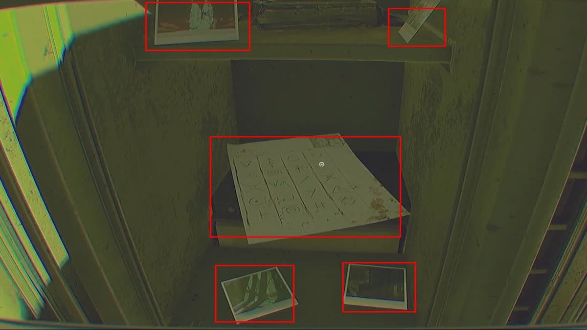 Внутри шкафчика посмотрите на записку с символами и числами на обратной стороне и четыре фотографии разных мест вокруг Отделения.