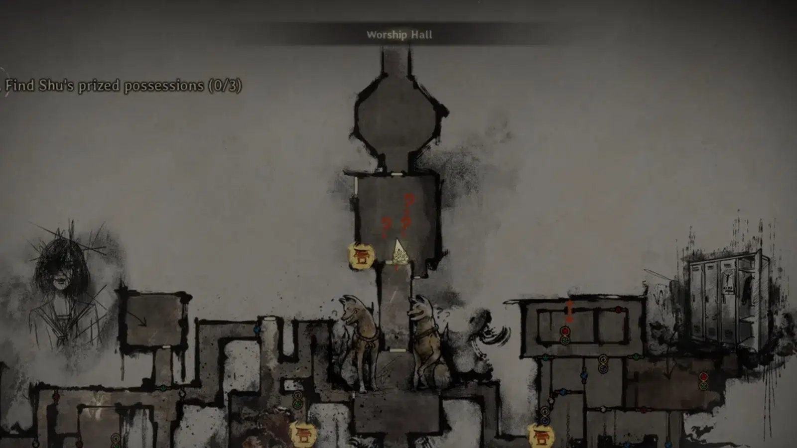 Следующая вещь Шу — портрет юной Хинако — расположена в западной части зала поклонения Тёмного святилища в Silent Hill F. Следуйте маршруту, показанному на изображении выше, и остерегайтесь врага перед вами. Однако используйте его в свою пользу: следуйте за ним по тёмным коридорам. В конце коридора, освещённого свечами, вы найдёте портрет юной Хинако.