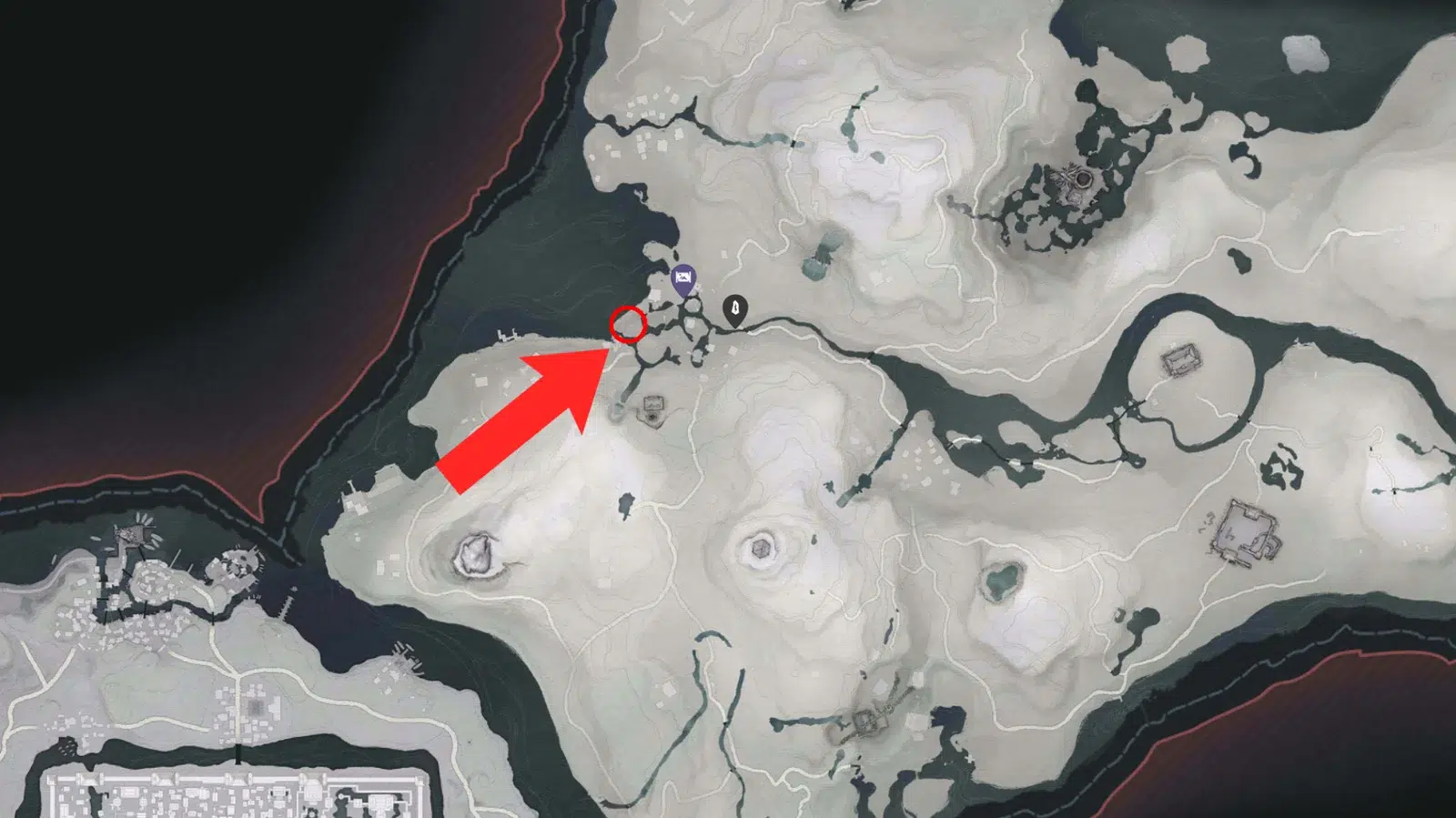 НПС у фонтана в Blissful Retreat открывает доступ к эмоции Giveaway. Важно включить многопользовательский режим. Идите к точке с названием Merit Pool рядом с Blissful Retreat. Она расположена на северо-западном побережье. На изображении Blissful Retreat отмечен фиолетовым маркером, а Merit Pool — красным кругом.