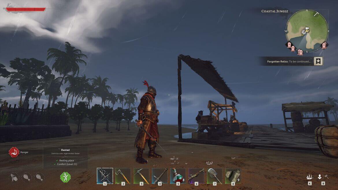 Двуручный меч удобно изготовить уже в самом начале, используя медную руду и грубую шкуру, которые встречаются повсеместно. Используйте мастерскую оружейника, чтобы создать и улучшить этот меч.
