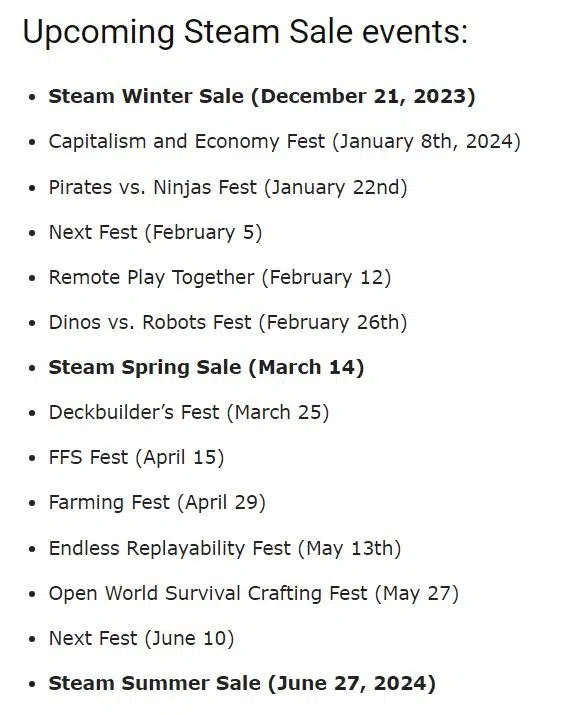 Каждая распродажа будет посвящена играм определённой тематики. Зимняя и летняя распродажи затрагивают множество игр разных жанров.