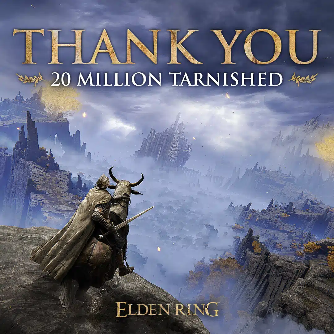 Спустя год после релиза Elden Ring, компания FromSoftware и издатель Bandai Namco поделились результатами продаж с игроками — лучшая игра 2022 года разошлась тиражом в чуть более 20 миллионов копий. Об этом они сообщили в посте в Twitter.