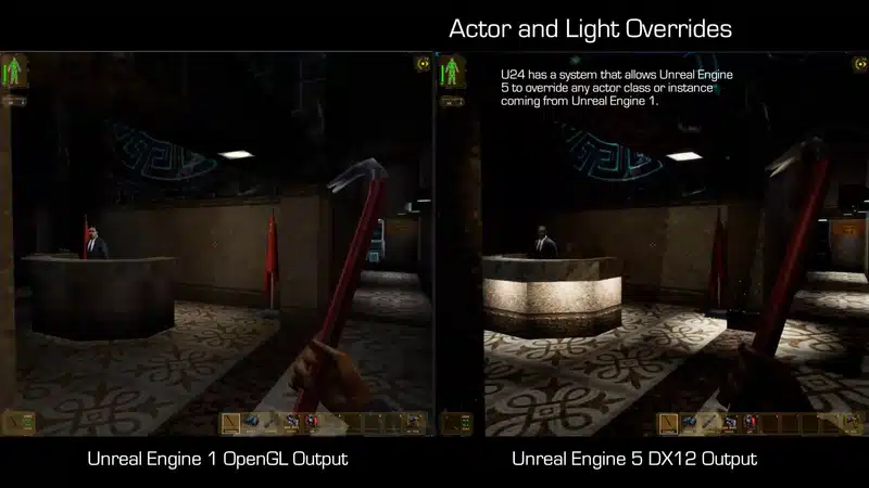 Примечательно, что оригинальная игра работает на самой первой версии движка Unreal Engine. Ее современная адаптация никак не изменяет текстуры и использует лишь исходные данные, что легко позволяет использование пользовательских модификаций.