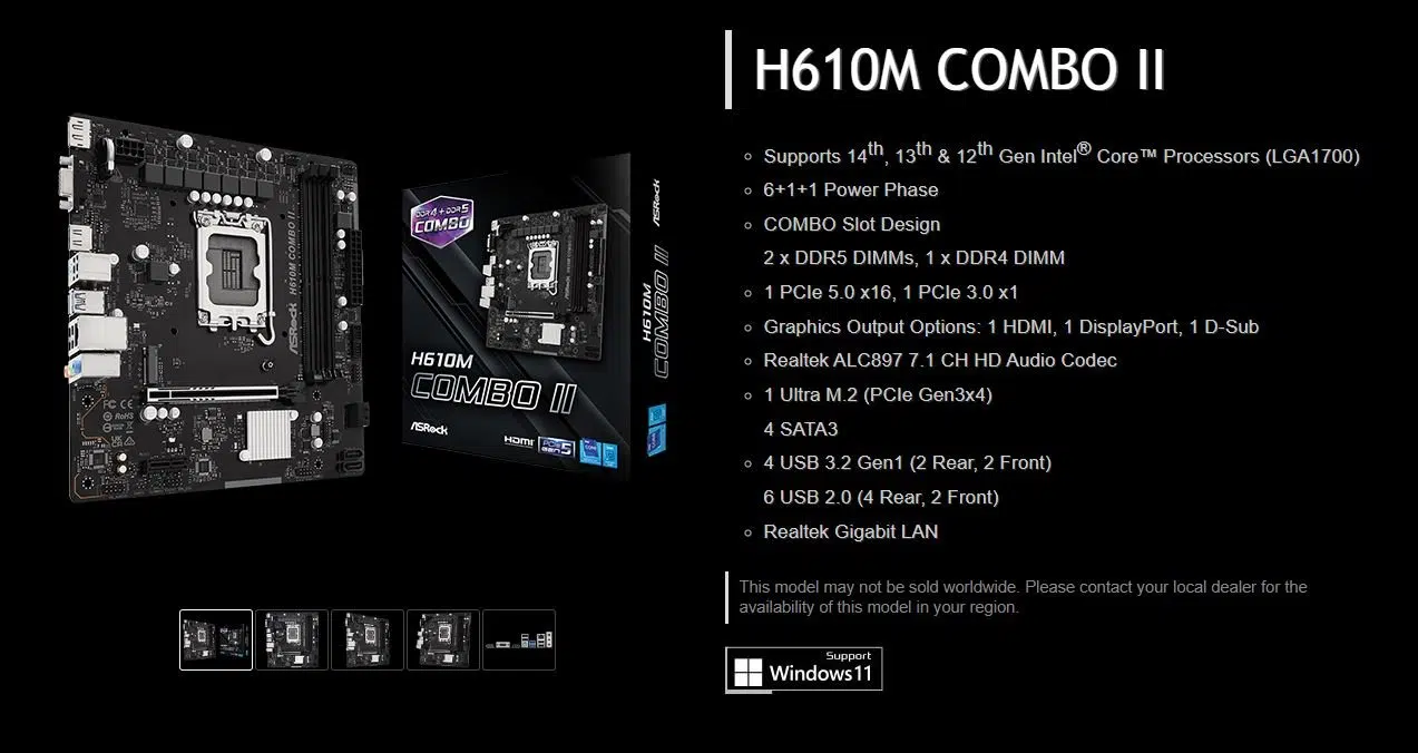У ASRock без лишнего шума появилась H610M COMBO II — редкая Micro-ATX плата, где есть слоты и под DDR4, и под DDR5. Это уже вторая потребительская материнка такого типа у бренда, и она явно целится в бюджетные сборки на Intel.