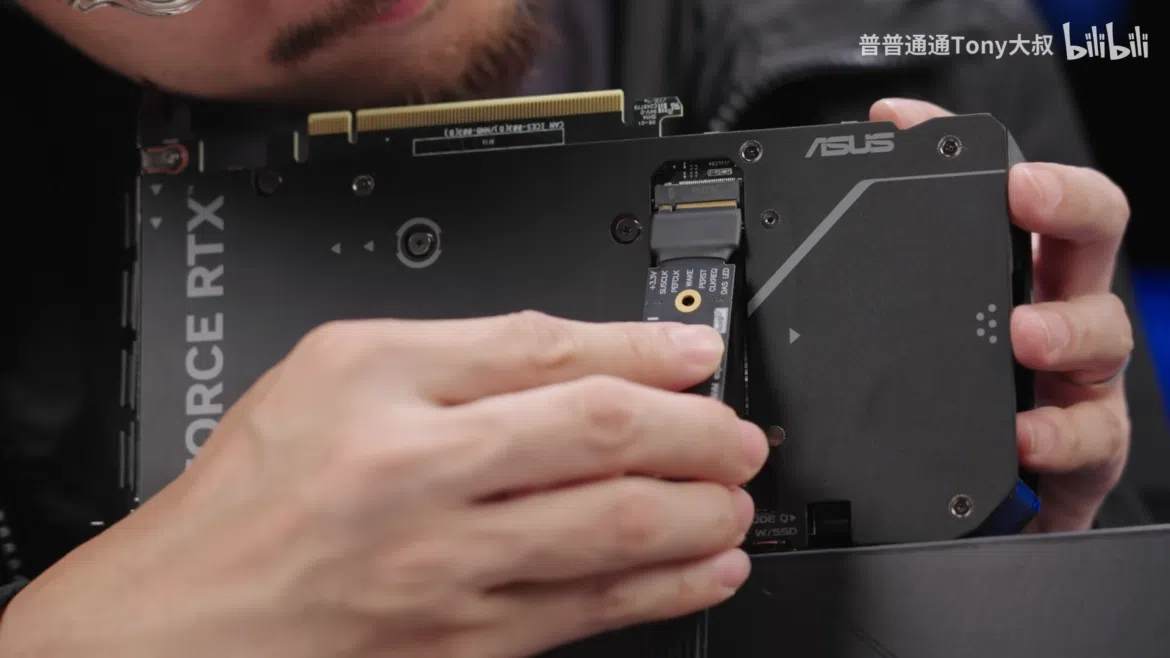 Также Asus показала подключение видеокарты к слоту M.2 на другой видеокарте. Внешней видеокартой была GeForce RTX 4090. Несмотря на её мощность, работала она без проблем.