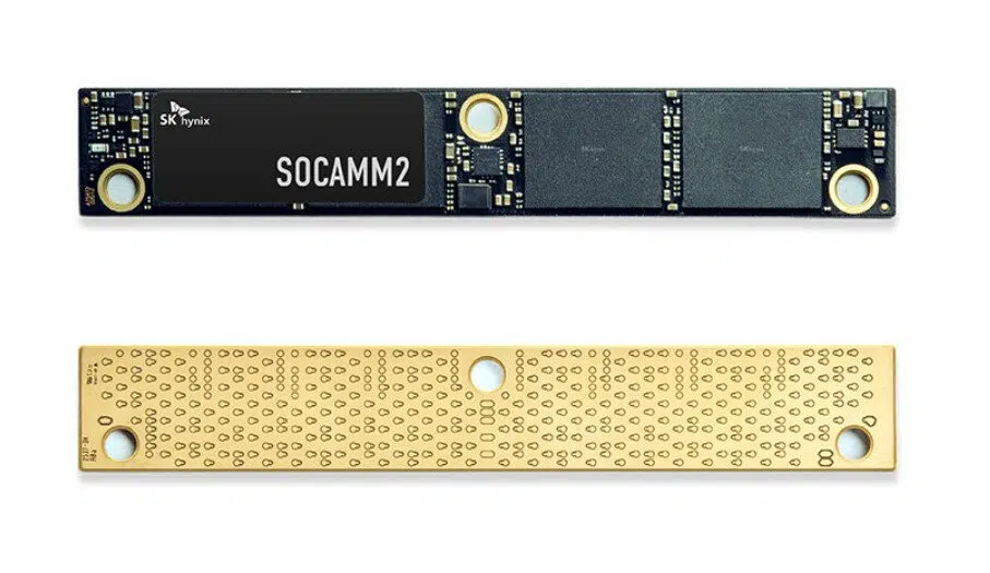 SOCAMM2 SK hynix делает на техпроцессе 1cnm (шестое поколение 10-нм класса). В качестве базовой DRAM компания использует LPDDR5X, то есть энергоэффективную память, которая исторически жила в мобильных устройствах.
