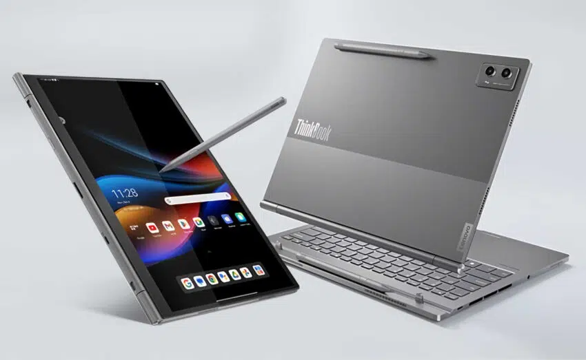 Речь идёт о ThinkBook Plus Gen 5 Hybrid. Этот планшетный компьютер оснащён одновременно операционными системами Windows и Android. Таким образом, его можно использовать не только как планшет, но и как ноутбук. С технической точки зрения это два отдельных устройства.