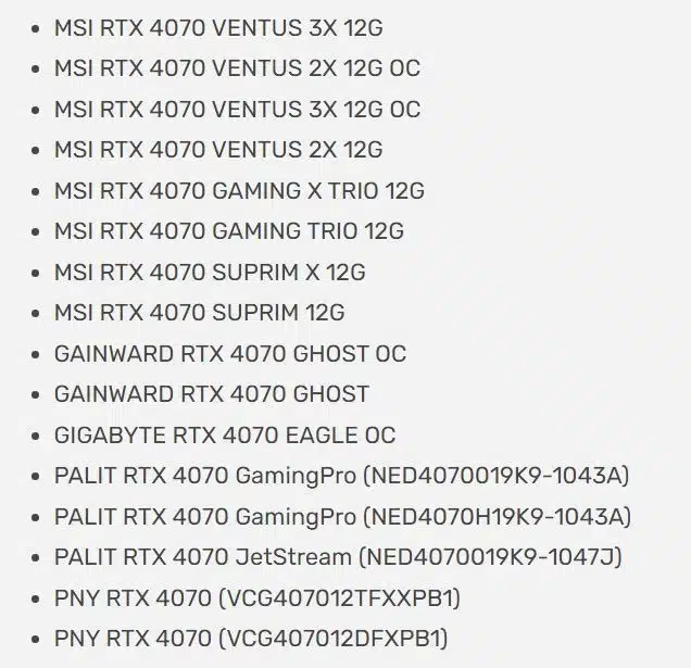 Большинство карт RTX 4070 получат ту же систему охлаждения, которая применяется в RTX 4070 Ti, поскольку графический процессор у них одинаковый. При этом тепловыделение RTX 4070 должно быть ниже, так что можно рассчитывать увидеть больше карт с двумя вентиляторами, нежели с тремя. Пока можно ознакомиться со списком видеокарт MSI Ventus 2X OC выше.