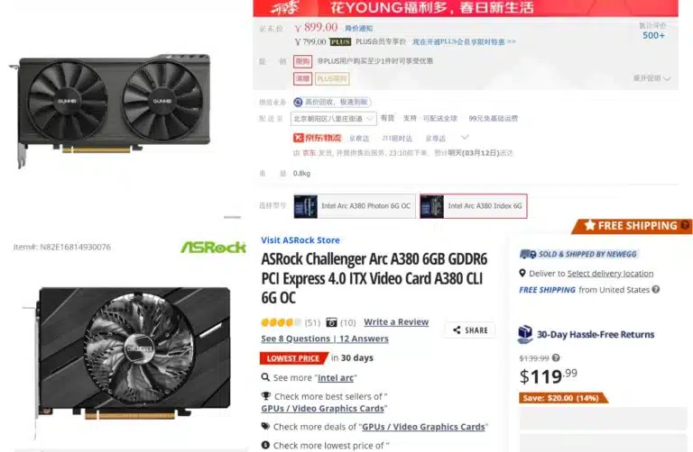 Intel Arc A380, A750 и A770 стали дешевле. Падение цен замечено на многих китайских торговых площадках.