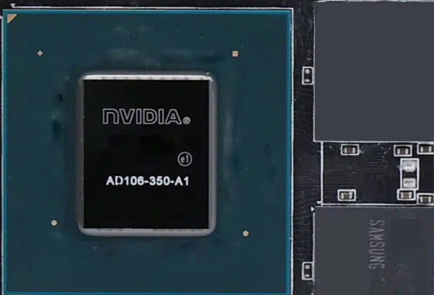 Появилось изображение графического процессора AD106-350 из видеокарты Nvidia RTX 4060 Ti. Это урезанный вариант чипа с 4352 ядрами CUDA (у полного 4608 ядер). Также здесь будет 8 ГБ памяти GDDR6 на шине 128 бит, тогда как у RTX 3060 Ti шина 256 бит.