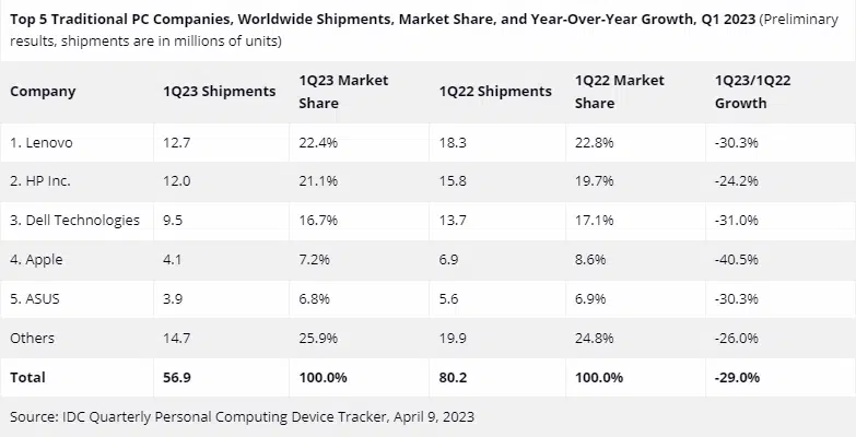 Наступил второй квартал и аналитики подводят итоги квартала первого в разных сферах деятельности. Это же происходит и на рынке персональных компьютеров. Представители компании IDC рассказали, что в минувшем квартале было выпущено 56,9 млн компьютеров и ноутбуков, что на 29% уступает показателю годичной давности. Выходит, что компьютеров продаётся меньше, чем до пандемии.
