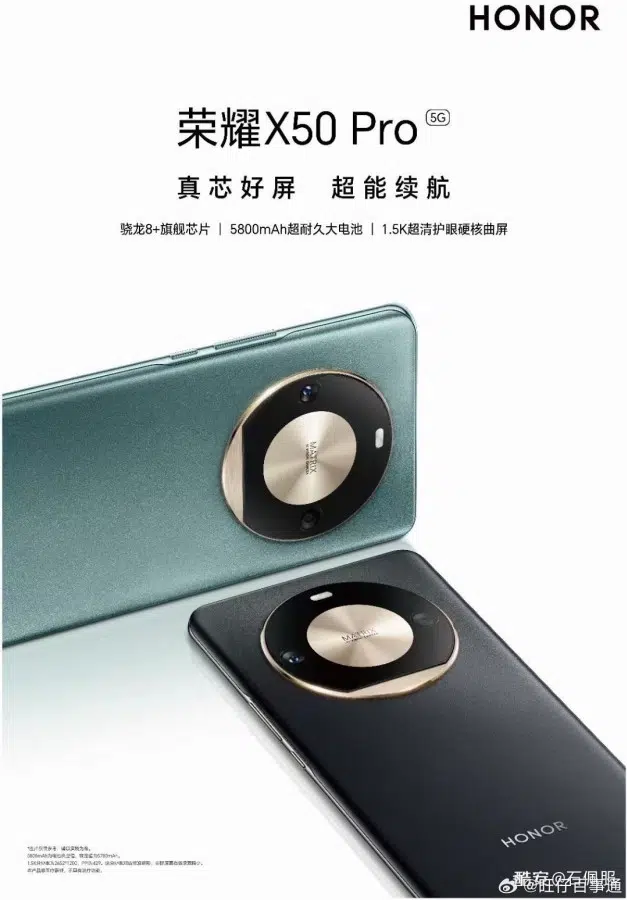 Бренд Honor готовится в ближайшее время представить свой очередной смартфон под названием X50 Pro. Новая утечка данных показывает зелёный и чёрный цветовые варианты устройства. На обратной стороне корпуса располагается круглый выступ камер, ёмкость батареи составит 5800 мАч.