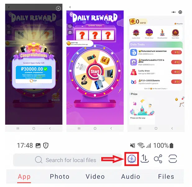Предназначением модуля SpinOk является удержание пользователей в приложениях как можно дольше. Это делается при помощи мини-игр, фальшивого розыгрыша призов и системы заданий. Модуль пытается избежать обнаружения антивирусными приложениями и скрывает сетевые подключения. Он отправляет на серверы злоумышленников различные сведения и получает в ответ ссылки для показа рекламных баннеров.