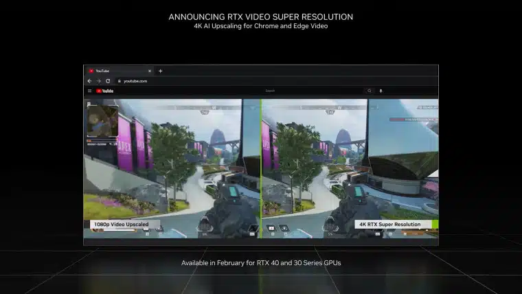 Google во вторник представила очередную версию браузера Chrome 110 для Windows, Mac и Linux. Если на компьютере есть видеокарта GeForce RTX 3000 или RTX 4000, Chrome 110 поддерживает функцию RTX Video Super Resolution. Применяя программный искусственный интеллект с вычислительными ядрами Nvidia Tensor в картах RTX 3000 и 4000, Chrome 110 может показывать видео с YouTube или Netflix на разрешении 1080p, 2160p и 4K. Необходимо установить последнюю версию драйвера видеокарты и включить опцию в панели управления Nvidia.