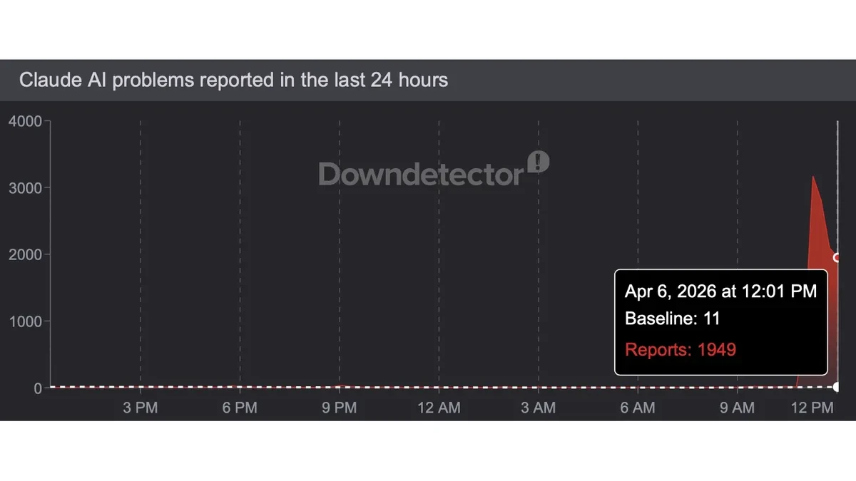 Параллельно выросло число жалоб в Down Detector: на пике было более 2 900 отчётов по состоянию на 6 апреля 2026 года, 18:32 МСК (11:32 AM ET).