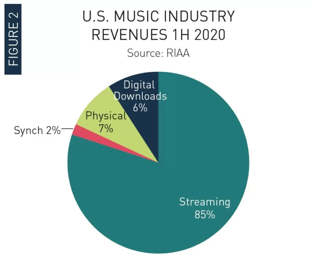 Наибольший заработок по-прежнему приносит потоковая трансляция музыки. На её долю пришлось 85% доходов за первое полугодие, что составляет $4,8 млрд. В первой половине 2019 года данный показатель составлял $4,3 млрд., а ещё годом ранее $3,4 млрд.