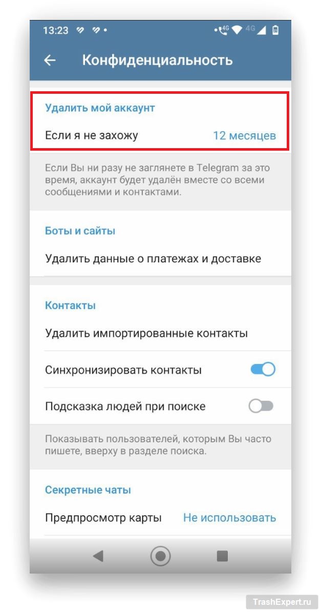 Внимание: Удаление аккаунта необратимо. Вы потеряете все чаты, контакты и медиафайлы. Используйте этот способ, только если уверены, что аккаунт вам больше не нужен.