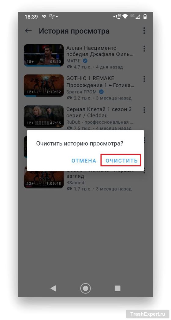 Вариант 2: Очистка истории в мобильном приложении RuTube