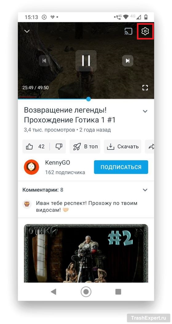- Найдите шестерёнку: Нажмите на значок настроек (шестерёнка) в верхнем углу плеера.