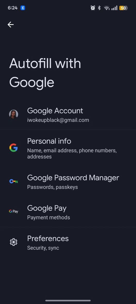 Автозаполнение связано с менеджером паролей Google. Оно заполняет имена пользователей и пароли на страницах входа в сайты или приложения. Данные хранятся в зашифрованном хранилище, привязанном к учётной записи.